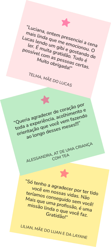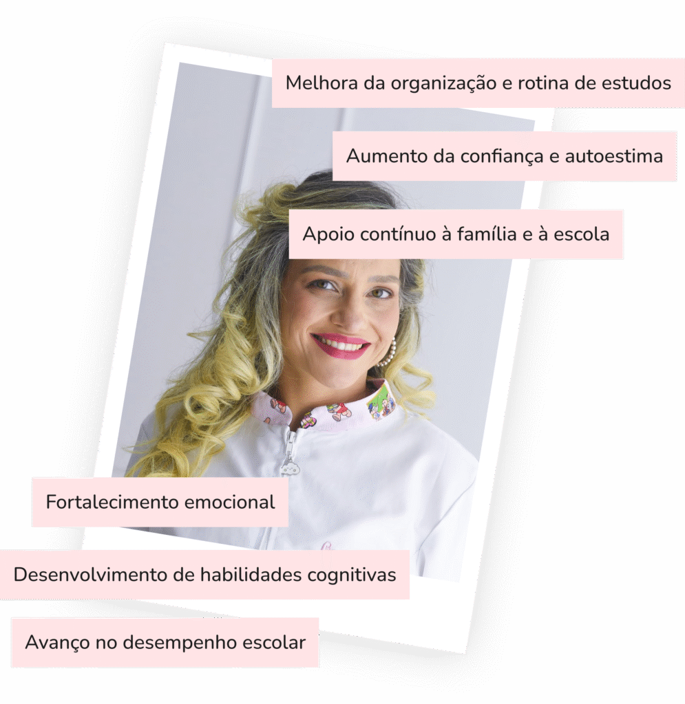 Atendimentos personalizados, com horário marcado, realizados presencialmente e/ou online. A dinâmica é definida conforme as necessidades do estudante e da família.